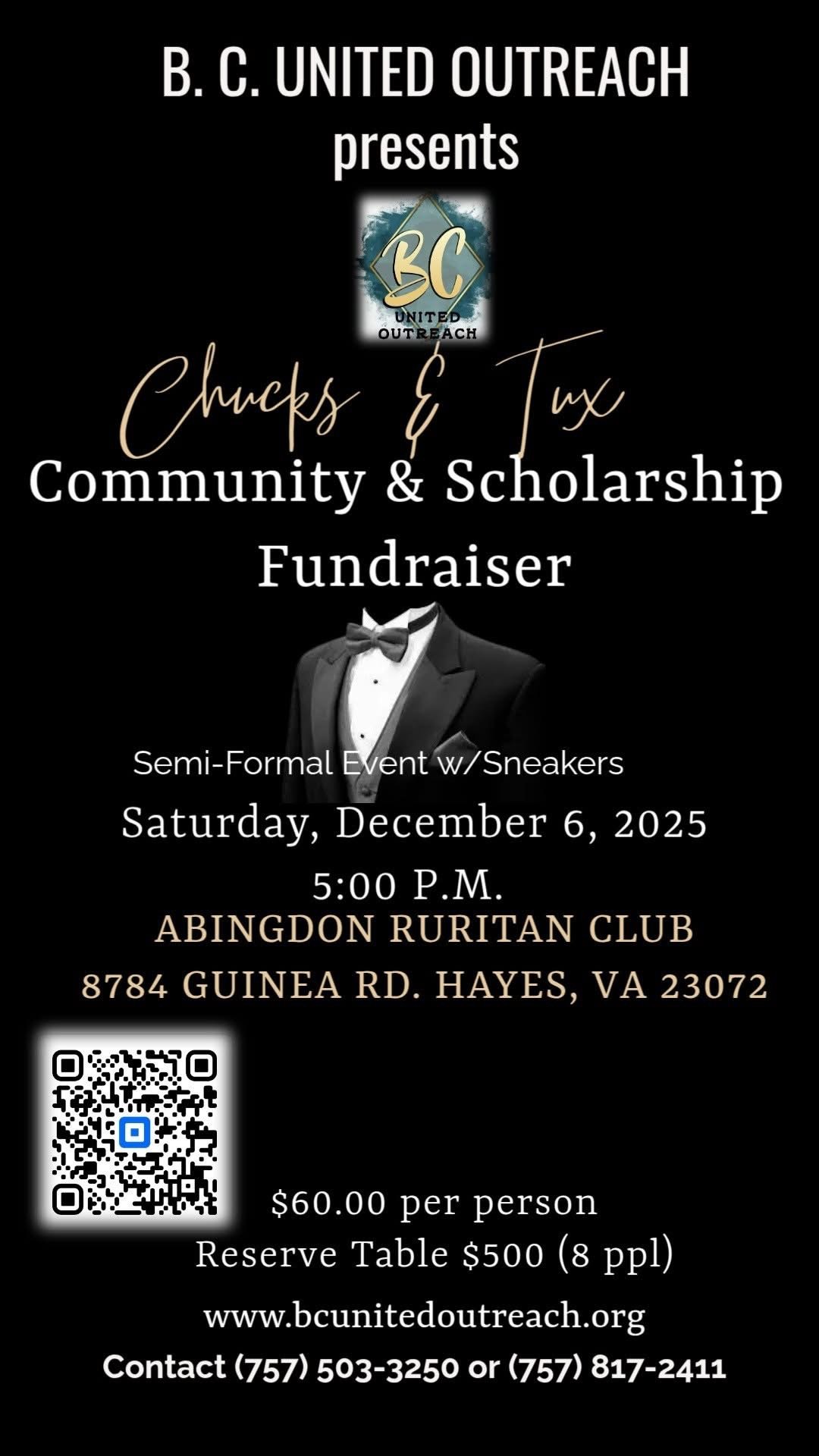 Join us for our annual scholarship fundraiser, Chucks & Tux Gala, Saturday, December 6th at Abingdon Ruritan Club! Click the link below to purchase a ticket!